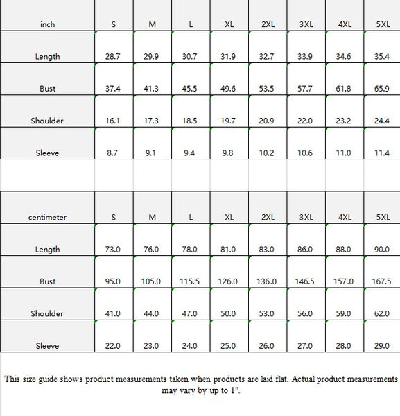 inch S M L XL 2XL 3XL 4XL 5XL