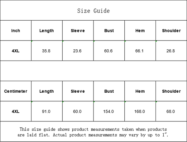 This size guide shows product measurements taken when products are laid flat. Actual product measurements may vary by up to 1".